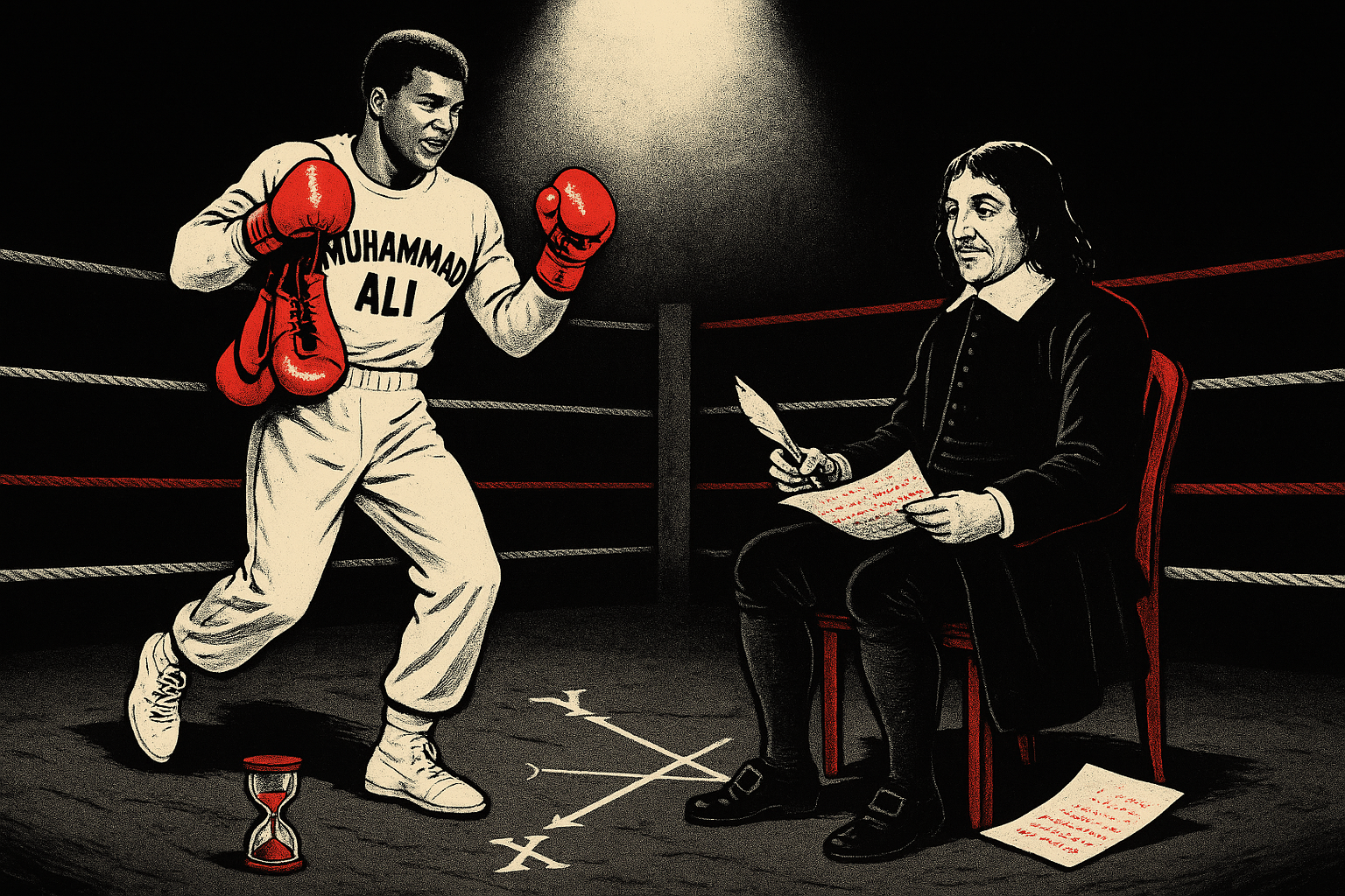 Ali trifft Descartes: Boxen gegen Beweise. TitanTalk zeigt, wie Argumente fliegen – mit Logik, Linksdrall und einer Portion Selbstironie.