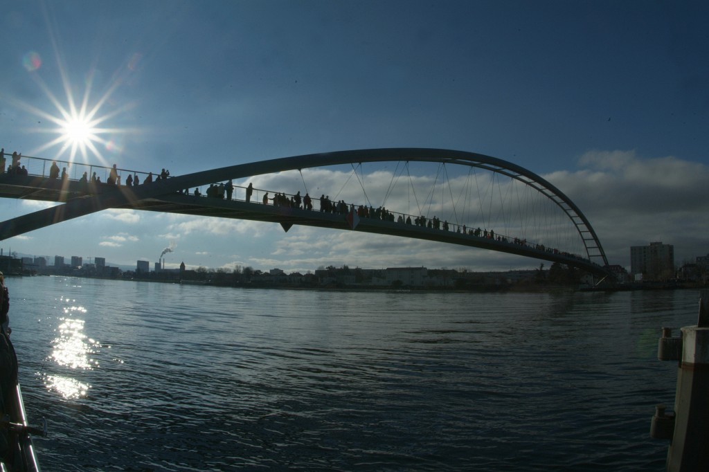 17.07.2013Die Dreiländerbrücke, eine Brücke vom Typ «Bogenkonstruktion», ist die längste Rad- und Fussgängerbrücke der Welt: Ihre Gesamtlänge beträgt ohne Zugangsrampen 248 Meter.